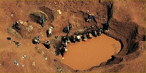 08 – Ancienne mine de diamant à ciel ouvert à Séguéla (région) aujourd’hui fermée, aucune mine officielle aujourd’hui, c’est interdit, avec toutefois des exploitations sauvages qui à la suite de la délimitation des villages causent des « manifestations hostiles » et parfois meurtrières dans la région.