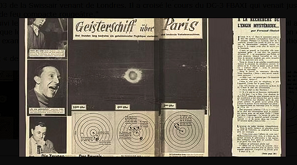 Le pilote du DC 3 dut changer de cap pour éviter une collision qui lui semblait imminente, puis l’objet disparut à ses yeux. Pour la tour de contrôle, l’objet semblait maintenant être du côté du Bourget, ce dont ils informent le pilote du DC-3.
