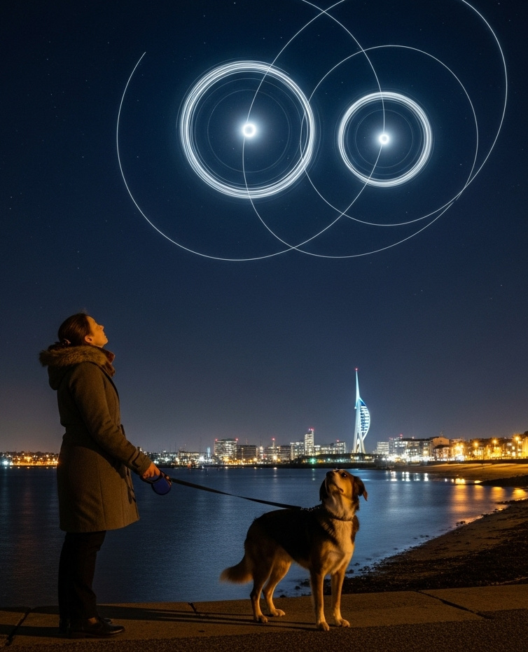 Une promenade nocturne avec son chien à Gosport s’est transformée en quelque chose d’assez inhabituel pour un résident local, qui prétend avoir repéré non pas un mais deux objets volants non identifiés aux premières heures du mardi 9 juillet 2025.
