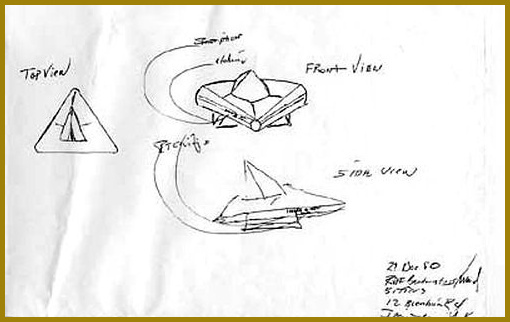 Croquis de l’appareil, tiré de la déclaration officielle de Jim Penniston, témoin de l’US Air Force