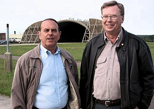 Rendlesham témoigne : le sergent technique Jim Penniston (à droite) (USAF-Ret., superviseur de la sécurité de Woodbridge) et (à gauche) le colonel Charles Halt (USAF-Ret., ancien commandant adjoint de la base de Bentwaters-Woodbridge).