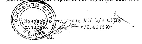 Les essais des appareils et la mesure des paramètres selon la carte technique 1-30 n’ont révélé aucun défaut. L’appareil fonctionnait normalement. Je suppose que cet effet peut se produire à la suite de l’action d’une impulsion puissante sur le système de puissance de l’appareil, notamment sur le bloc BP-263(U-10), puis sur VTG-127 (US, U3, U2) et ensuite sur les blocs U14, U12 et U11, supportant la charge principale dans le traitement des données dans l’appareil. Aucun effet similaire n’a été observé dans d’autres moyens de communication. Aucun effet anormal n’a été observé dans les chaînes ACS 5-1 et 4-1 wprp. Aucun cas de ce type n’avait été observé auparavant. Je considère nécessaire de mentionner que l’expérience a montré que l’appareil 13948 était faible dans le système électrique. En juillet de cette année, lors d’un orage, un fusible de 10 ampères a sauté dans le système électrique de l’appareil, 153948 de tous les ensembles électriques en ordre.
