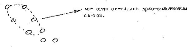 – le deuxième objet observé entre V. Ozeryany et la gare était dans une ellipse ; ses lumières étaient disposées comme indiqué dans le dessin :