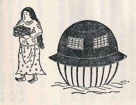 - La structure : La description du vaisseau évoque une « soucoupe volante » classique, avec des fenêtres transparentes et une coque métallique, des concepts assez étrangers au Japon rural du début du XIXe siècle.