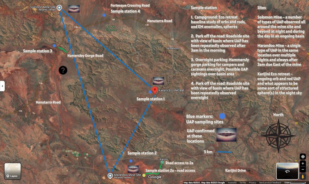 Sites clés : Ses recherches de terrain se concentrent sur un site en Australie-Occidentale, qu’il surnomme « l’équivalent australien de Skinwalker Ranch », situé à proximité de la base militaire stratégique Harold E. Holt.