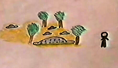 Dans les dessins d’autres groupes ethniques, la légende était différente : les petits personnages étaient appelés « personnes non identifiées » et l’engin – ou quel qu’il soit – était désigné comme « la machine » ou « l’objet ».