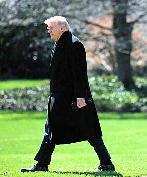 Le président américain Donald Trump et le secrétaire à la Défense Pete Hegseth se dirigent vers Marine One sur la pelouse sud de la Maison-Blanche à Washington, le 18 mars 2026. (Photo de Brendan SMIALOWSKI / AFP via Getty Images)