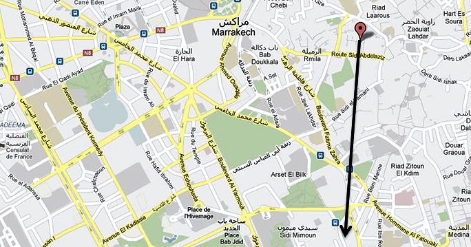 plan du quartier de Marrakech et direction des deux disques.