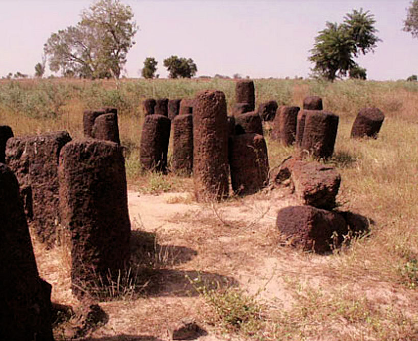 Il se trouve que j’ai eu l’occasion dans le courant des années 90 d’aller visiter les mégalithes de Sine Ngayène. À partir de la route nationale, la Trans gambienne, à cette époque en très mauvais état, on devait prendre des pistes, parfois pas très praticable en voiture de tourisme, pour aller sur ce site situé à quelques dizaines de kms de la RN. Une expédition qui déboucha sur un village, et un très grand site de mégalithes totalement abandonnés ou mouton et autres animaux broutaient les herbes sèches ! Ces mégalithes ont en fait été mis en place depuis le III ème siècle avant jésus Christ et jusque que vers le XVI ème siècle. Ils sont fréquemment organisés en cercle et ils servaient à l’inhumation de dignitaires, parfois avec vêtements, poteries, et ornements divers. Certains lieux peuvent aussi avoir servi à des cérémonies en fonctions des diverses croyances locales. On trouve en général les carrières ou été prélevés ces pierres dans un secteur proche des lieux de commémoration ou on trouve ces concentrations de mégalithes. Cette région du Sénégal détient d’ailleurs la plus forte concentration de ces pierres au monde ! La majorité des sites mégalithiques sont protégés par l’Unesco. Certains seulement sont gardés ou font l’objet de panneaux indicateurs, la majorité sont sans véritable protection et sont accessibles à tout le monde.